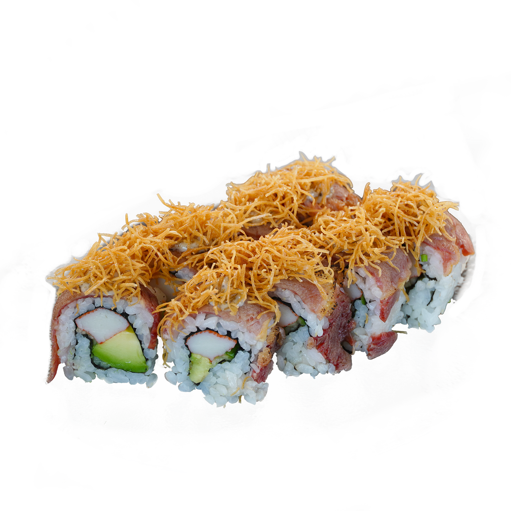 Surimi, Avocado, Geflambeerde ossenhaas, trufflemayo, Vermicelli